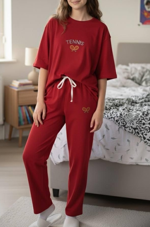 ست تیشرت لانگ و شلوار بگ گلدوزی زنانه طرح tennis | پنبه 100% | 6 رنگ | سایز 38-48 | ترندی استایلناموجود