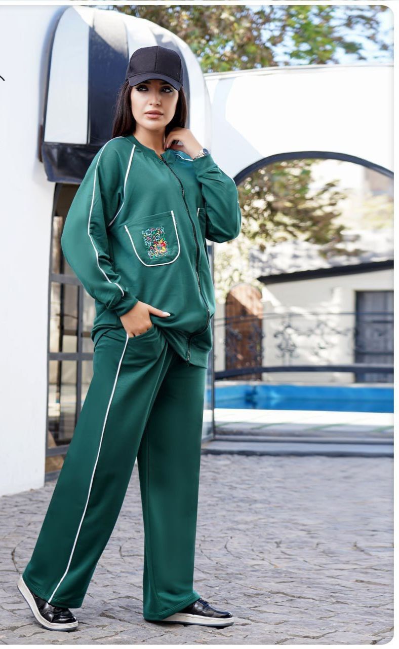 ست ورزشی سویشرت شلوار جیب گلدوزی - پارچه گلگسی - فری سایز - 5 رنگ پاییزهناموجود