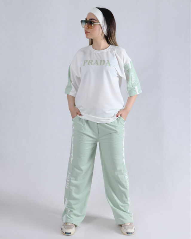 ست تی شرت لانگ باکسی و شلوار prada گلکسی پنبه 38 تا ۴۸ نرم و با کیفیتناموجود