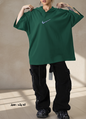 تیشرت باکسی کلاهدار سوپر پنبه طرح نایکیناموجود