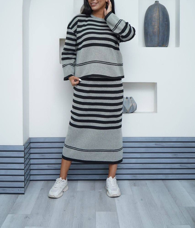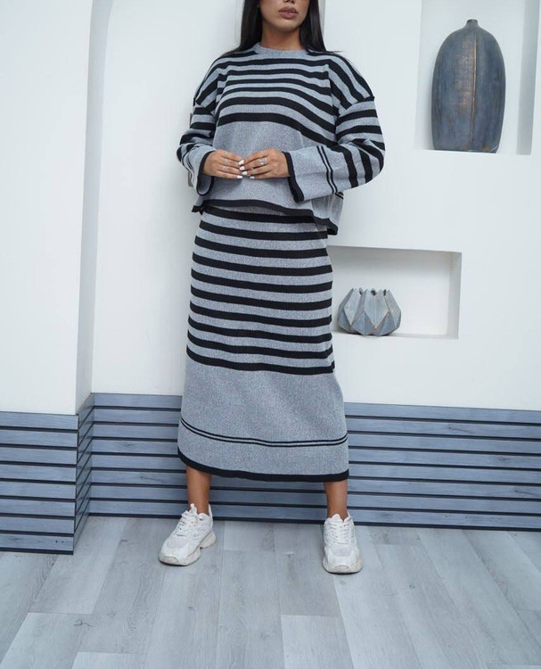 ست بافت کراپ دامن راه راه زنانه | خرید ست بافتنی نخی | فروشگاه ترندی استایل
