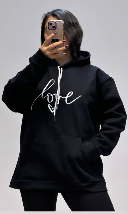 هودی تو کرکی طرح LOVE - پارچه اسپان درجه یک - Free Size