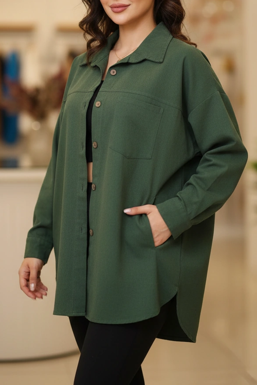 مانتو زنانه کتان جین سنگشور تک جیب - سایز بزرگ تا 54 - قد 83