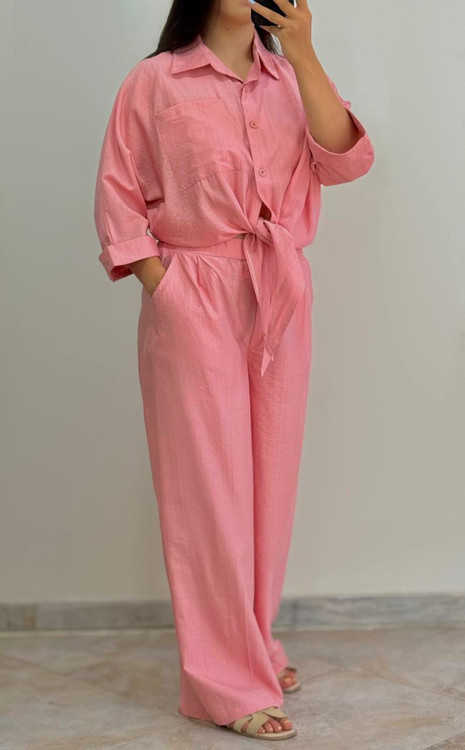 شومیز گرهای این ست با جزئیات منحصر به فرد خود، نمایی زیبا و متفاوت به شما میبخشد، در حالی که شلوار راحت و با دوخت تضمینی، آزادی حرکت کامل را برای شما فراهم میکند. پارچه بیسان با نرمی استثنایی و کیفیت بدون ابرفت، این ست را به یک سرمایهگذاری بلندمدت برای کمد لباس شما تبدیل میکند.