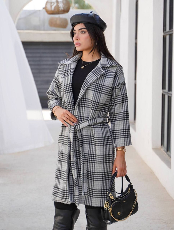 کت پالتوی چهارخانه پشمی زنانه ترندی استایل | Free Size تا 46 | گرم، خاص و شیک برای پاییز و زمستان