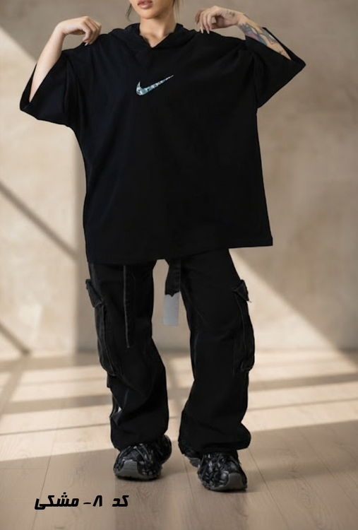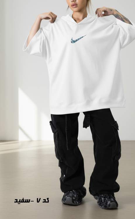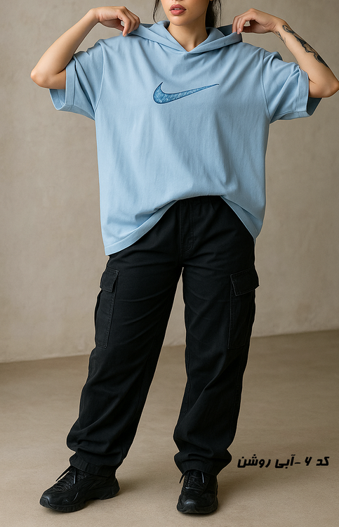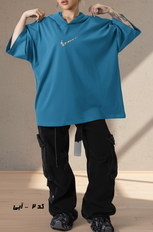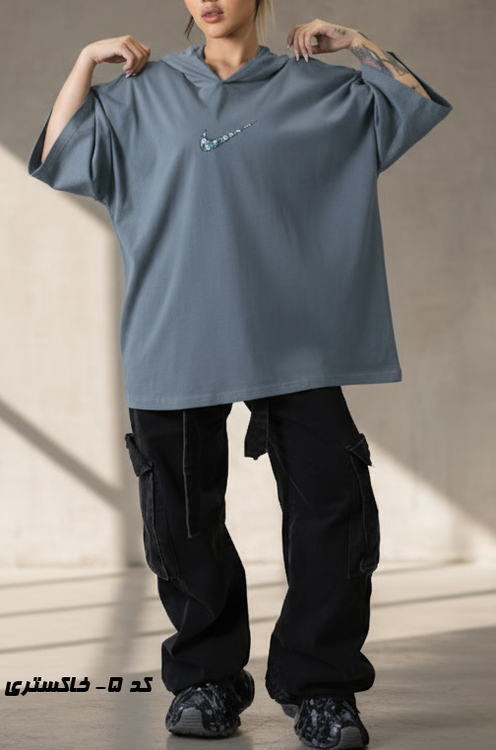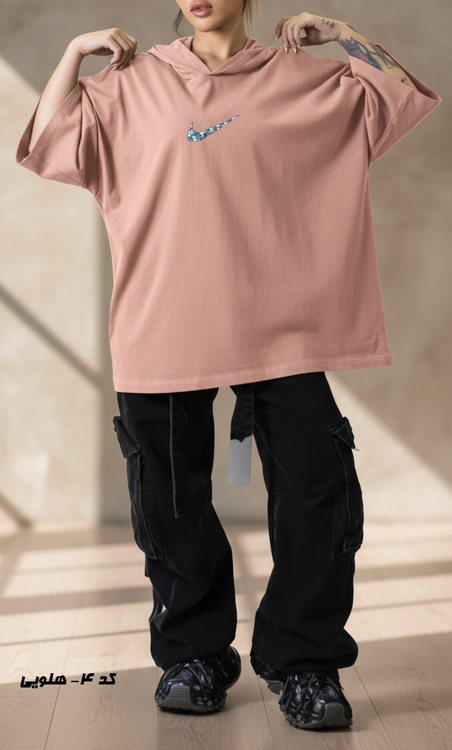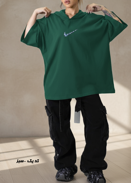 تیشرت باکسی کلاهدار سوپر پنبه طرح نایکی