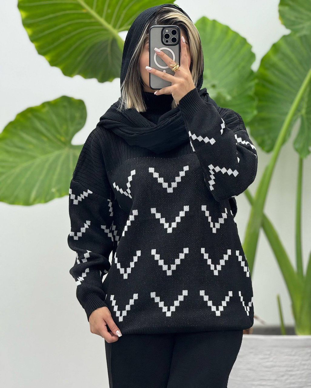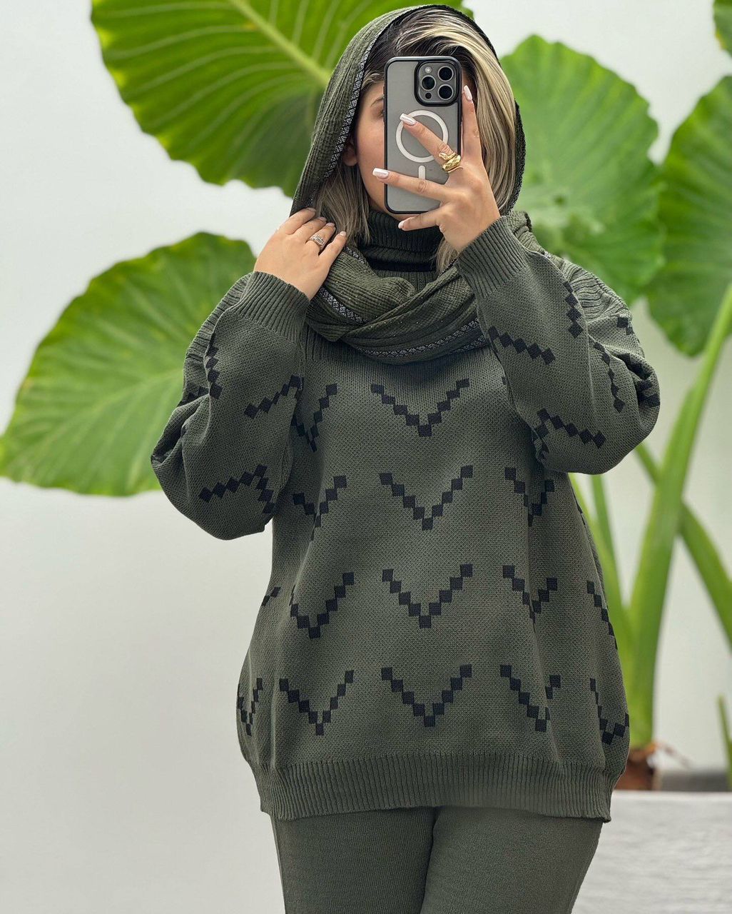 ست بافت گرم بالا طرح وی - فری سایز 40 تا 48 - 5 رنگ | ست زنانه زمستانی