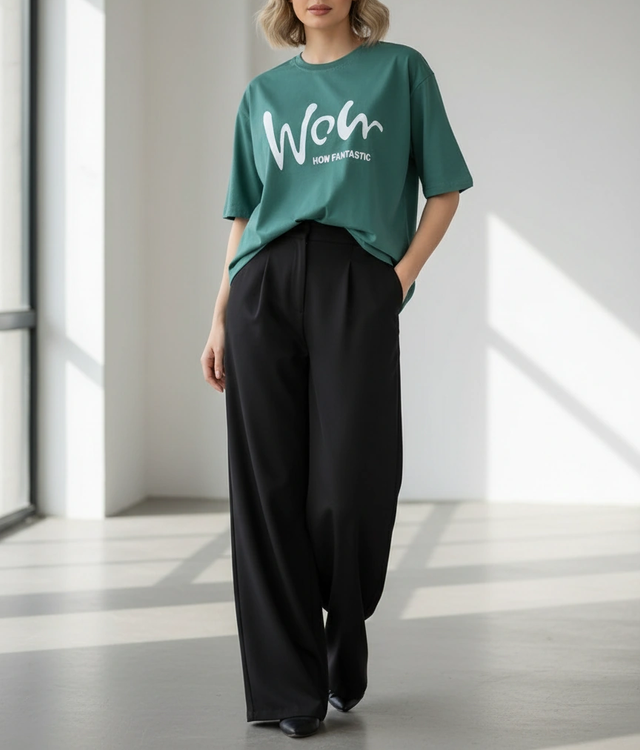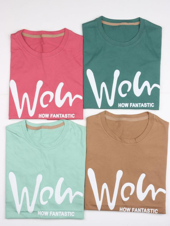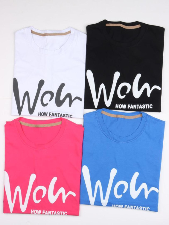 تیشرت باکسی طرح WOW پنبه سوپر زنانه - سایز ۳۶ تا ۴۸ - ۸ رنگ