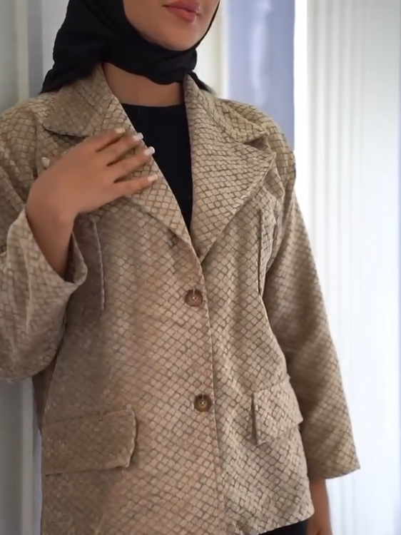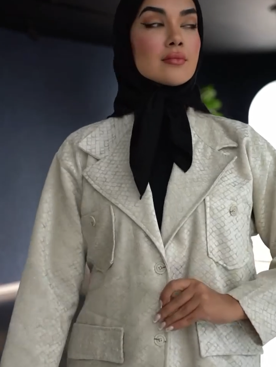 کت پاییزه ما با طراحی Free Size، به گونهای برش خورده که برای سایزهای ۳۸ تا ۴۶ تناسب عالی دارد. برش این کت به سبک سمیفیت (Semi-Fit) است، یعنی نه خیلی تنگ و نه خیلی گشاد، بلکه دقیقاً در نقطه تعادلی قرار دارد که هم فرم بدن را زیبا نشان میدهد و هم راحتی حرکت را تضمین میکند. قد ۷۲ سانتیمتری این کت، پوشش مناسبی تا روی باسن دارد و میتوان آن را با شلوار، دامن یا لگ ترکیب کرد. یقه کلاسیک و دکمههای زیبای آن، جلوهای رسمی و شیک به کت میبخشد، در حالی که طرحهای برجسته ژاکارد روی پارچه، جذابیت بصری فوقالعادهای ایجاد میکند.