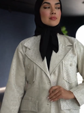 - استایل مجلسی: کت رنگ نقرهای یا کرم را با دامن مدادی، بادی مشکی و کفش پاشنهبلند ترکیب کنید و یک لوک مجلسی فوقالعاده بسازید.