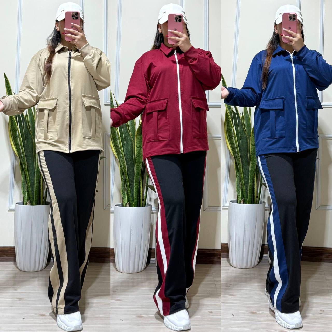 ست سویشرت شلوار بغل خطدار گلکسی ویتکس | قواره بزرگ | فری سایز 40-50