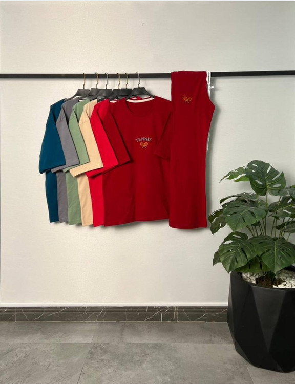 ست تیشرت لانگ و شلوار بگ گلدوزی زنانه طرح tennis | پنبه 100% | 6 رنگ | سایز 38-48 | ترندی استایل