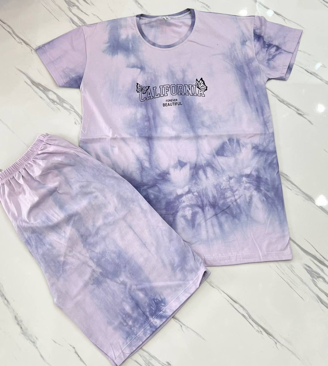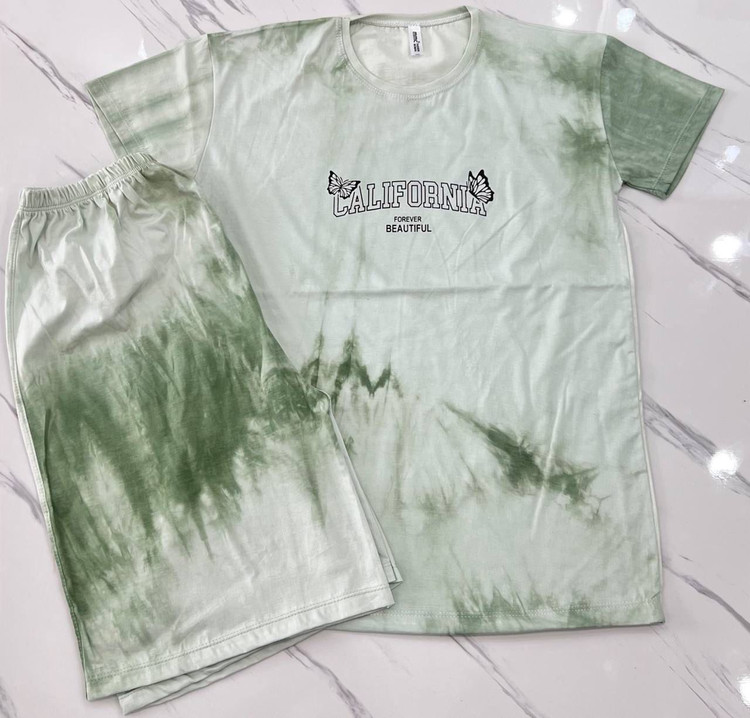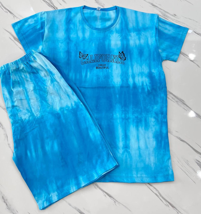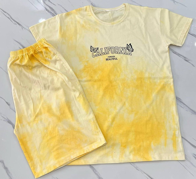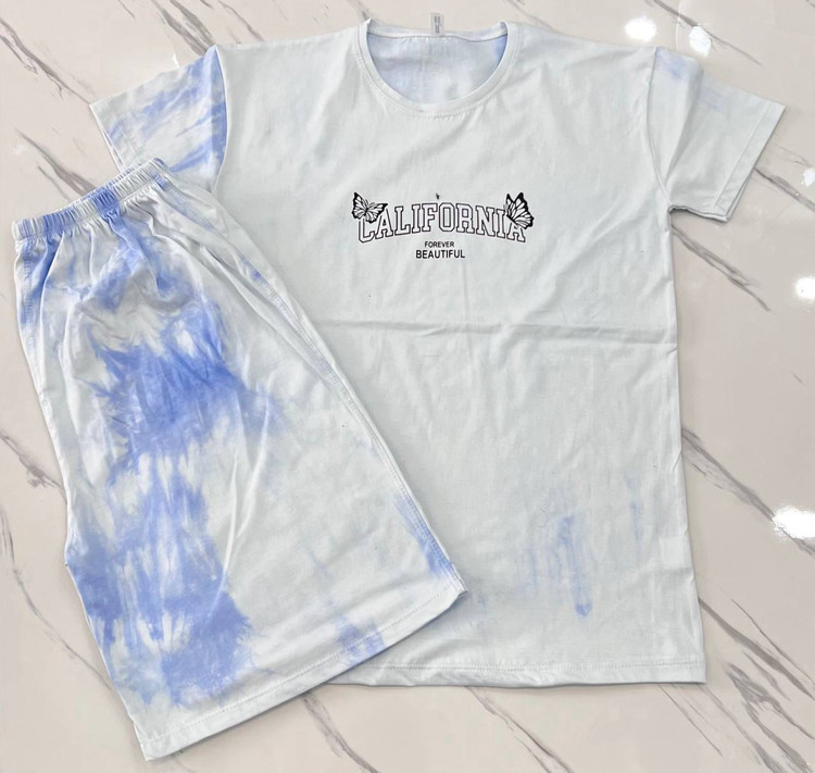 ست تیشرت و شورتک آبرنگی زنانه طرح CALIFORNIA- فری سایز - پنبه سوپر - قواره دار