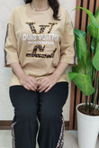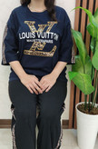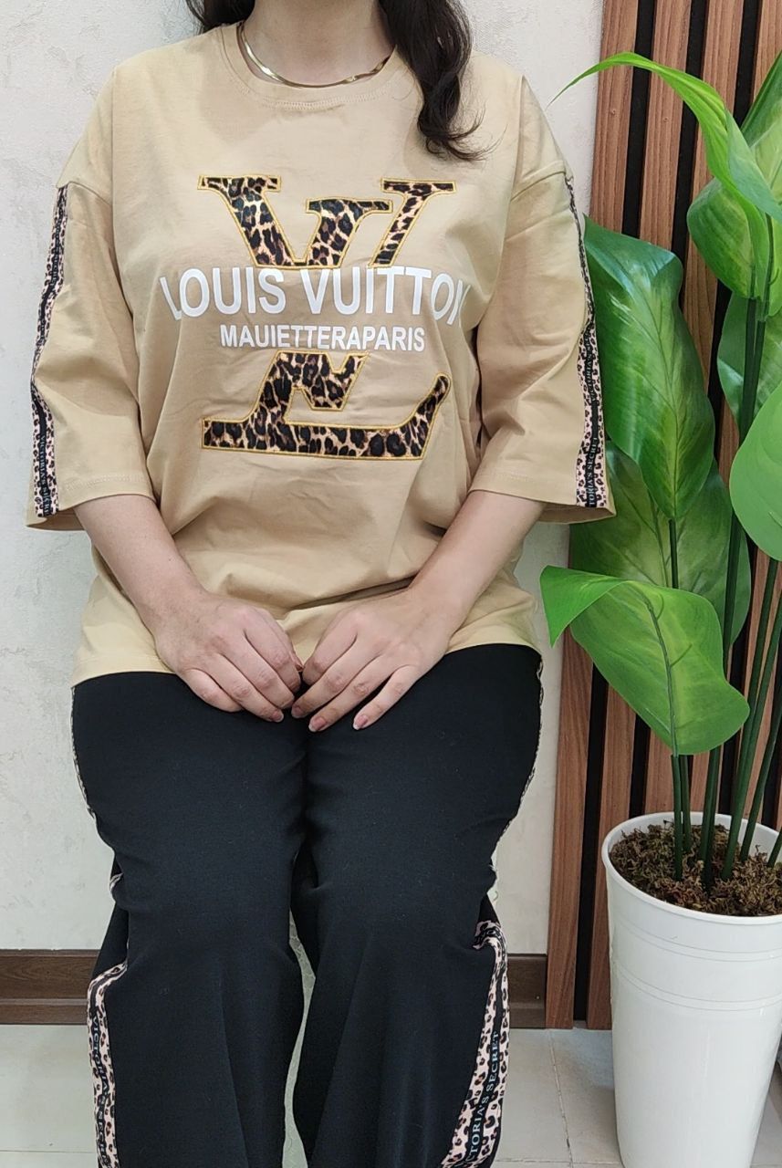 ست تیشرت آستین سهربع و شلوار بگ زنانه طرح LUIS VITTON- پارچه سوپر گلکسی ترک - فری سایز ۴۰ تا ۵۰ - ۸ رنگ کپی