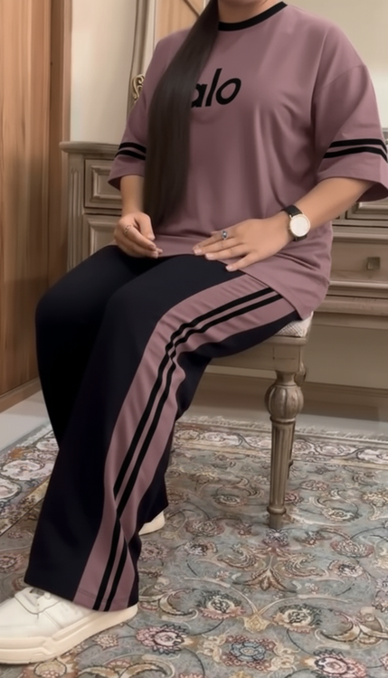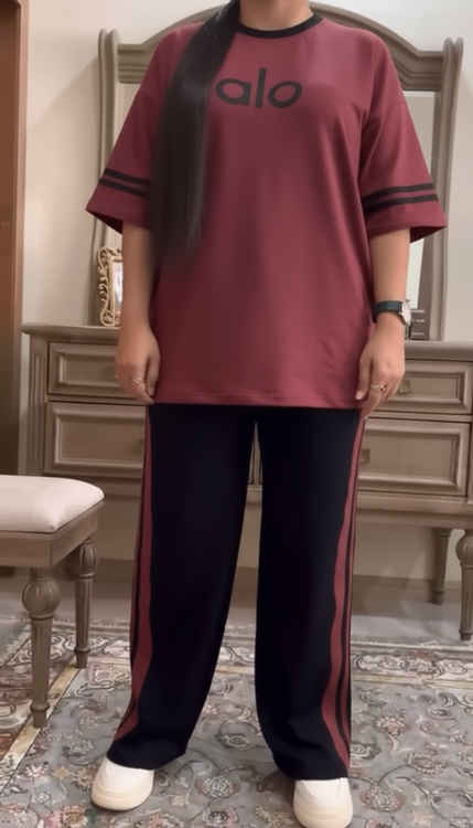 ست اسپرت زنانه ALO جنس گلکسی پنبه | تیشرت و شلوار راحتی و شیک