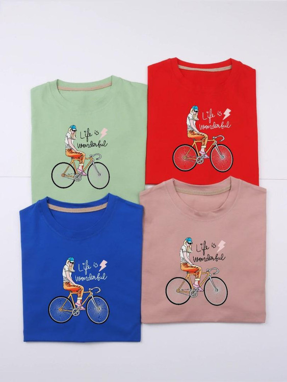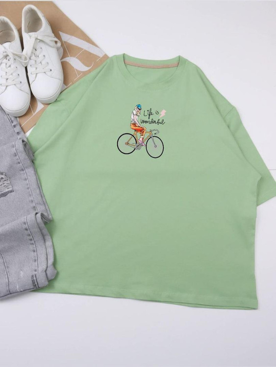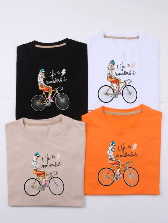 تیشرت باکسی زنانه طرح Bike پنبه سوپر سایز 36 تا 48 عرض سینه 62 قد 68 هشت رنگ