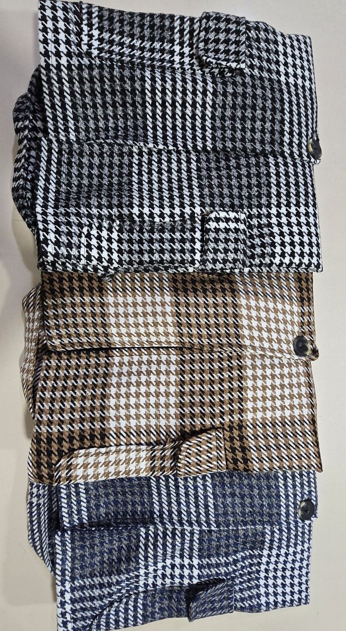 کت چهارخونه پشمی زنانه یقه انگلیسی آستردار فریسایز مناسب سایز 40 تا 50 قد 73