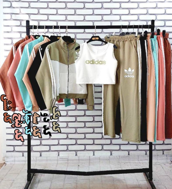 ست اسپرت زنانه پاییزه سه تکه آدیداس با تاپ - جنس دورس گلکسی فری سایز
