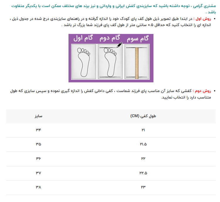 راهنمای سایز بندی: اسلاید آخر عکس ها