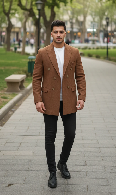 کت مردانه فیرس ایتالیا- تکرنگ قهوهای سایز 46