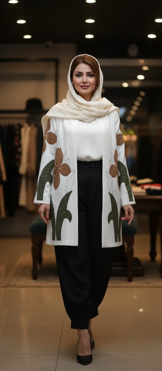 کت زنانه گلدار گلدوزی مازراتی کجراه بهاره قوی