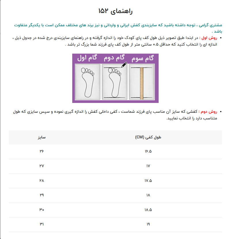 سایزبندی: 26تا 31 ( راهنما در بخش توضیحات)
