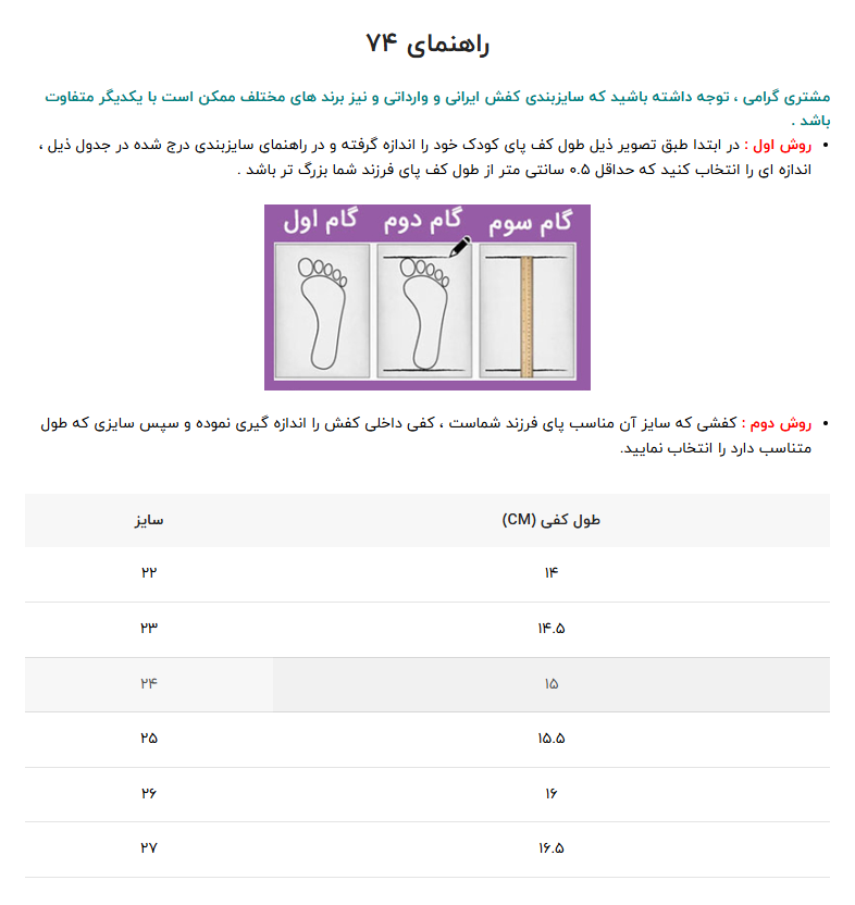 سایز: 23 الی 27 ( راهنما در اسلاید چهارم عکس ها)