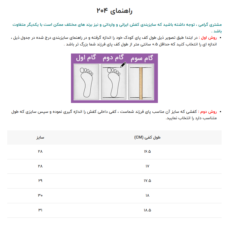 سایز بندی: 27 تا 31 ( راهنمای سایزبندی در اسلاید سوم مطالعه شود)