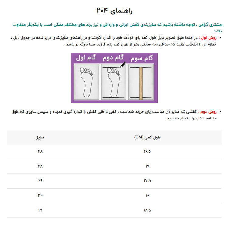 27 تا 31 ( راهنمای سایزبندی در اسلاید سوم مطالعه شود)